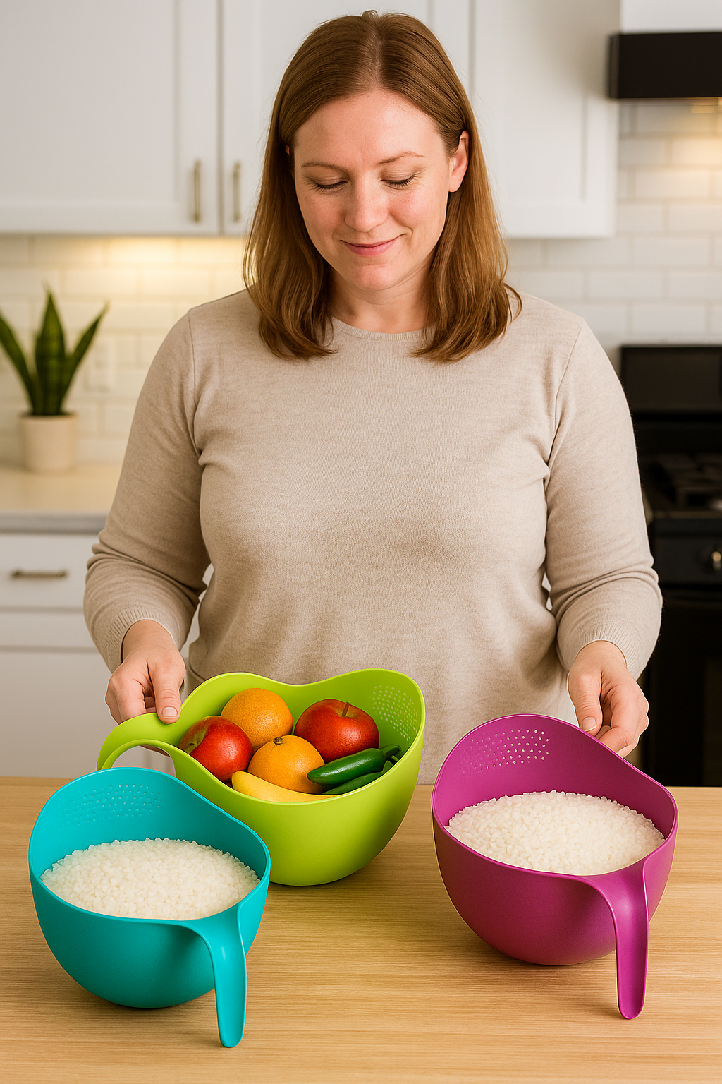 Wash rice, pulses, fruits, and vegetables easily with this specially designed strainer bowl. The perforated design drains water quickly while keeping your hands clean. Lightweight, durable, and practical for daily use.